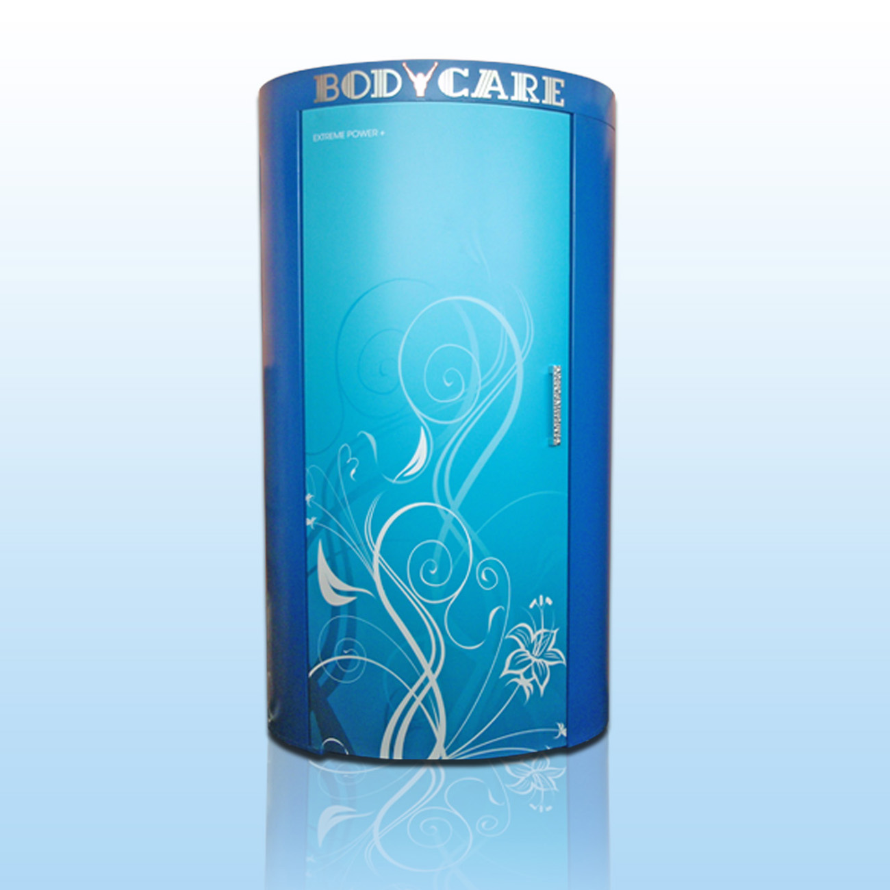 The high-tech reflector lamps with 3,3% UVB factor decrease duration of the procedure to 35%. Standard receive: -Elepse form, only possible to obtain a uniform tan. -Highly efficient electronic ballasts controll the radiating, that increased +10% efficiency of the lamps, prolong their life, helping better and faster to burn ends of the lamps and reduce the impact of the white legs. -One door and a little distance between the lamps for maximum efficiency. -Electronic control -Multilevel adjustable ventilation - 5200 m3h -Stereo Pioneer -Start-Stop function in the solarium. -Electronic counter inside. -Reflective floor with additional plexiglass for more comfortable barefoot footing. -Protective plexiglass plate with 100% UV transmittance in front of the lamps. -Illuminated plexiglass graphic on the door. -Custom-color: gray, blue, red or gold -Dimensions 221 cm x 85 x 110cm, 300 kg, 9,8 kW, 400V -CE certificated. Made in EU